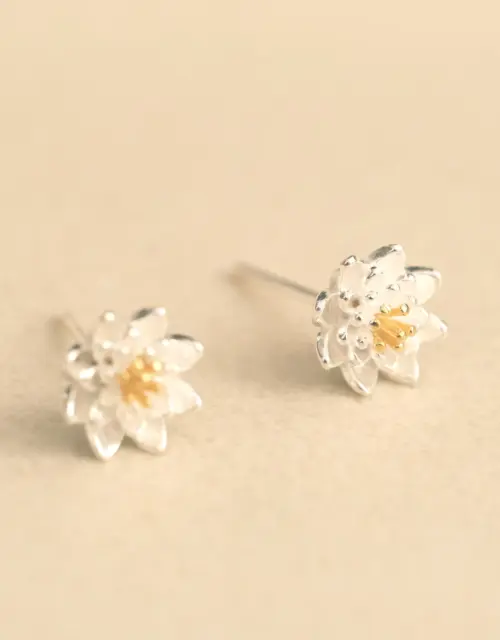 • 925 Silver Lotus Earring, Silver Lotus Stud Earring, Dainty Stud Earring, Lotus Jewelry, Zen Earring, Buddhda Lotus Earring Gift for Her $29.80